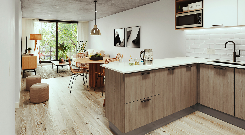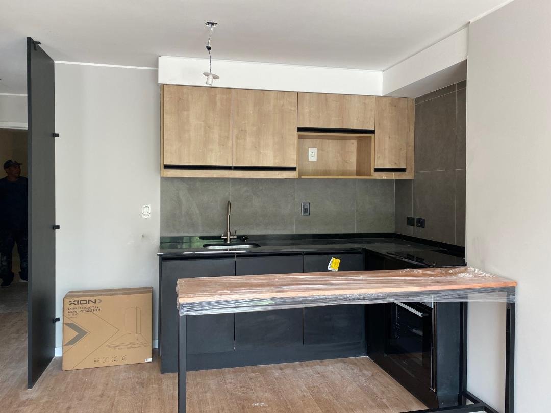 Muebles bajo mesada y aéreos. Los Monoambientes se entregarán con barras de cocina instaladas.
